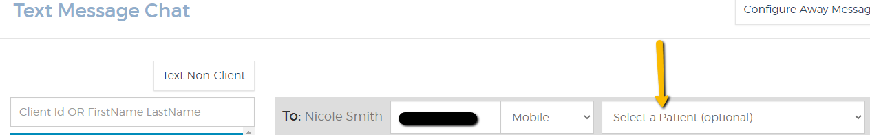 - If needed, you can override that mobile phone number with a different texting number. This number will then be stored in the client's chat window as an associated number offered in the drop-down.