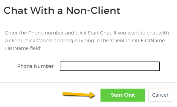 - When a non-client sends a text message it will appear as a new chat window in the Text Message Chat page. A small circle with a number inside will appear to the right of the phone number. The number in the circle indicates how many new messages the client has sent and need to be read.