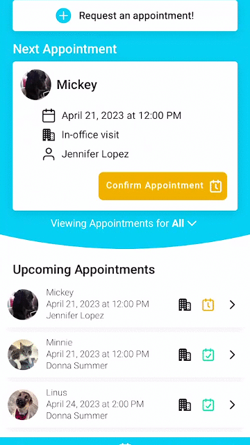 PetPage offers Pet Parents the ability to confirm appointments 3 days before the appointment starts. When they confirm their appointment, the confirmation date and time will be displayed on the Retention Calendar in the confirmed column via the AllyDVM logo