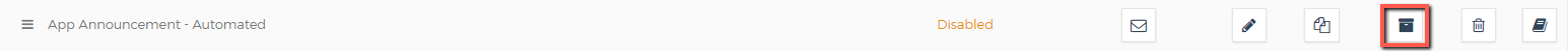 Once you have enabled the new App announcement automatic communication, you will want to archive the old one so that it stops sending to your clients. To do so, go to your list of automatic communications and select the archive button next to the old App Announcement, as shown below.