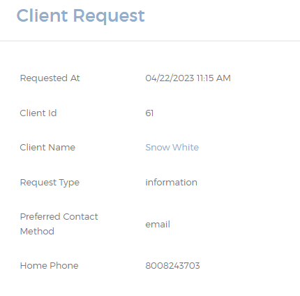 - From the Client Profile, clients can click "my information" to view and update their contact information.